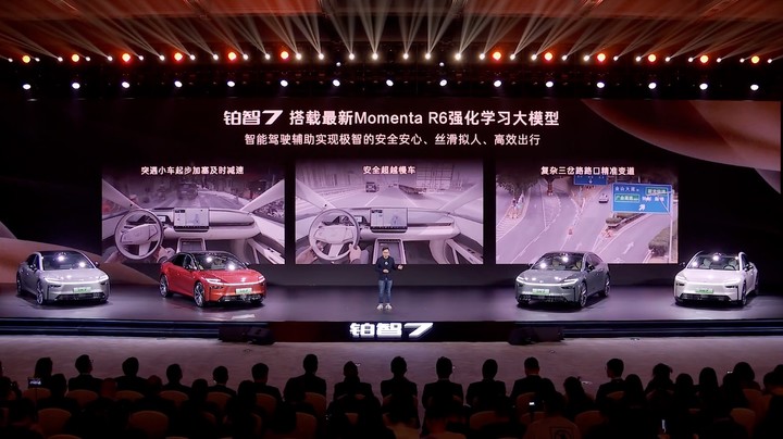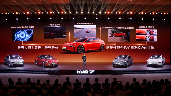 在中国市场看重的智驾层面,铂智 7 搭载了 Momenta R6 强化学习大模型,并配备了激光雷达等 27 个高精度传感器。